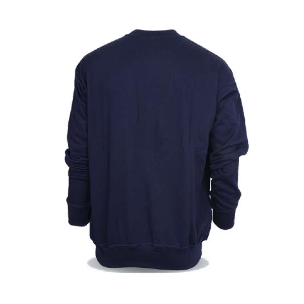 Comfortable round neck sweatshirt featuring knitted ribbing at the neck and sleeves, complemented by white piping and an embroidered design on the left chest.